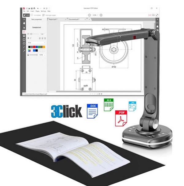 - Trục xoay, cánh tay nối dài có thể thiết kế theo dạng cổ khớp hoặc xoay 360 độ : Máy chiếu vật thể có thân gập được, với các khớp xoay linh hoạt. Cần đỡ có thể kéo cao, gập thấp, xoay trái phải tùy vị trí người dùng. Nhờ đó, góc chiếu luôn được điều chỉnh dễ dàng theo vật thể đặt dưới. Dù bạn đặt một chiếc điện thoại, một cuốn sách dày hay một mô hình nhỏ, đều có thể điều chỉnh khung nhìn nhanh chóng chỉ bằng vài thao tác tay.
