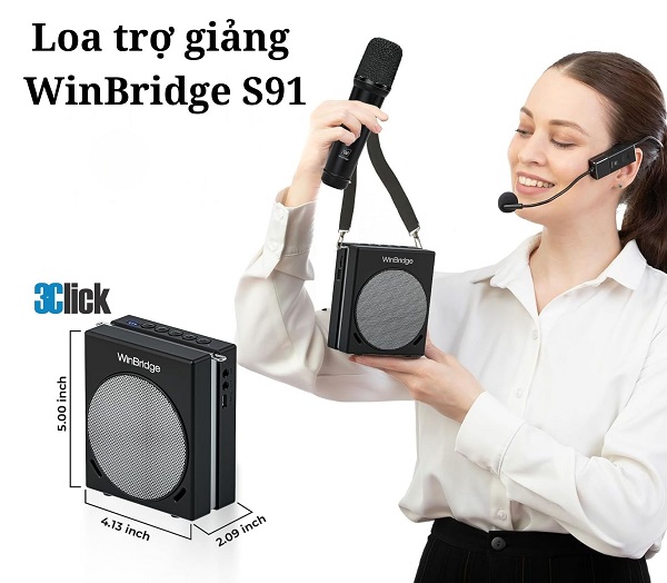 Máy trợ giảng WinBridge S91 âm thanh to rõ, công nghệ UHF ổn định, hỗ trợ dual mic, pin lâu, kết nối đa dạng, lý tưởng cho giáo viên, đào tạo. Dùng tốt trong nhà và ngoài trời.
