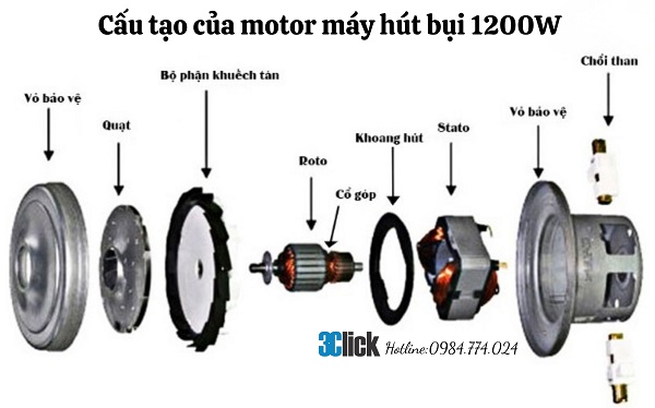 Nguyên lý hoạt động của motor máy hút bụi 1200W